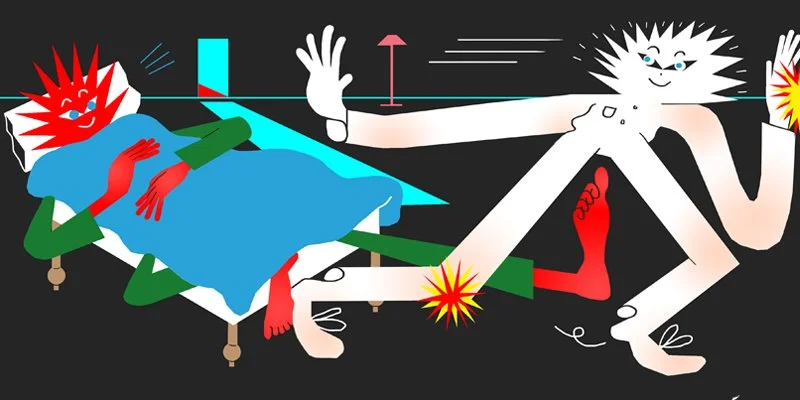 Från duntäcket hörs ett högljutt skratt.